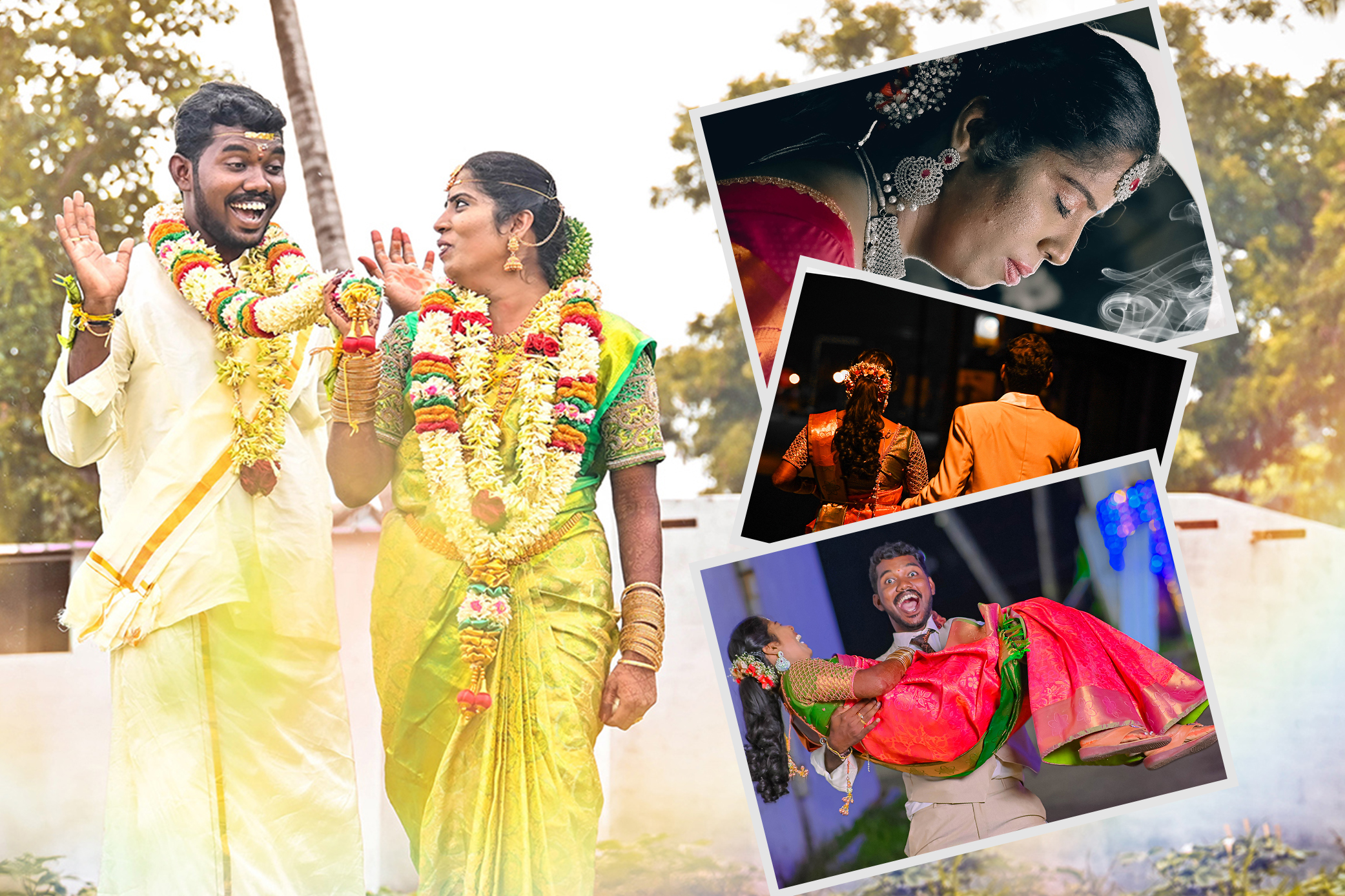 We are one of the top-rated photographers in Coimbatore. We are also one of the leading wedding and creatively thoughtful photographers. We cover all special events. Such as Weddings, Engagements, Pre-Weddings, Baby Showers, House Warming Ceremonies, Birthday Shoots, Baby Shoots, and more. Along with Outdoor Photography services, we also offer photo studio services such as album design, editing photos, calendaring, video making, photo framing, etc.